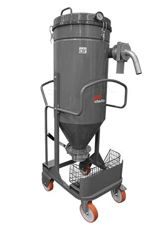 The AIR 200 is an industrial compressed air vacuum designed to recover large quantities (200 litre capacity) of high specific gravity material, such as sand in sandblasting and shots in shot-peening. Powerful Venturi vacuum unit powered by compressed air, polyester cartridge filter with Self Clean system to protect the motor, and integrated butterfly discharge valve for complete and quick discharge make it the ideal solution for the sandblasting and shot peening industry. Easy to handle and lift thanks to its forklift ready design.