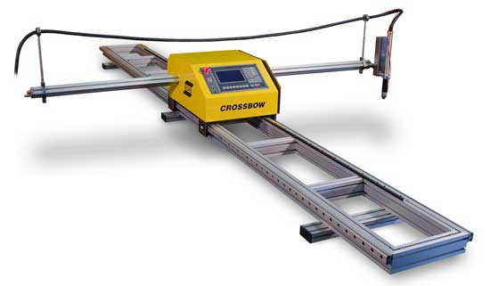 Crossbow can be equipped with plasma, oxy-fuel, or both. With plasma cut mild steel or aluminium up to 20 mm (3/4 in.), or stainless steel up to 15 mm (5/8 in.). Using oxy-fuel cut mild steel up to 100 mm (4 in.) thick. It’s simple, menu driven interface makes operation easy to learn and use. The CNC features a comprehensive library of 24 common shapes which minimize programming and set-up time. Dimensions are easily edited to create custom shapes without additional programming. Custom programs are supported through basic M- and G-Code programming, and off-line programmed NC files can be transferred to the machine using a standard USB connection.
