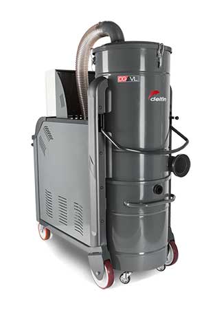 DG VL series industrial vacuum cleaners are resistant and powerful, ideal for sucking up large mixed quantities of solid and liquid material in continuous applications or installed on centralised extraction systems. The powerful side channel blower generates high levels of vacuum, making these vacuum cleaners suitable for extracting any type of material. The large surface polyester filter (different classes of filter available for specific applications) and practical built-in Selfclean system (activated by a compressor installed on the machine) guarantee a long working life. The ease with which it can be picked up by a standard forklift ensures simple and safe handling even when the container is full. DG VL vacuum cleaners are also available in an Atex certified version.