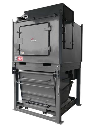 High performance mobile industrial vacuum cleaner with lobe pump and mounted on a removable container.